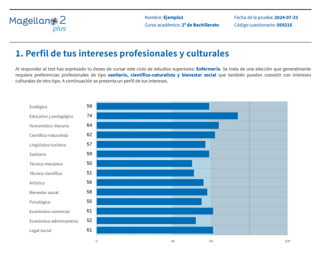 - Enfoque Integral: Magellano Plus 2 ofrece una visión holística que combina intereses, aptitudes y motivaciones.